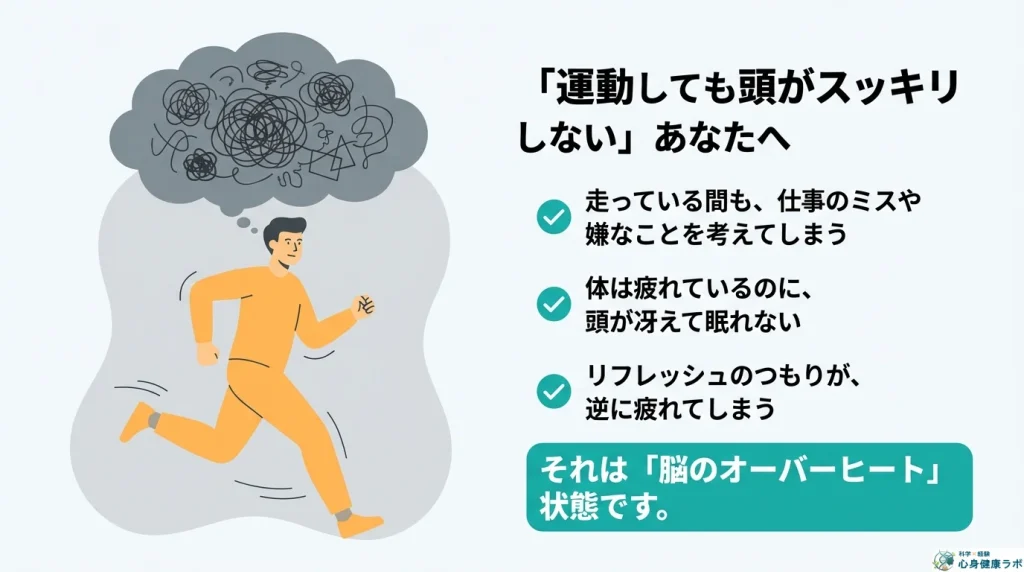 実は、うつやメンタル不調の時に『ただ運動するだけ』だと、脳の興奮が収まらないことがあるんです。