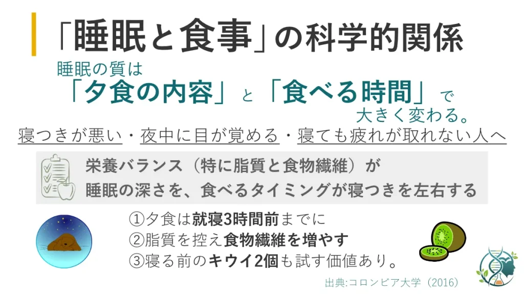 - ✅ つまり、「何を」「いつ」食べるかを少し意識するだけで、あなたの睡眠の悩みは解決に向かうかもしれません。