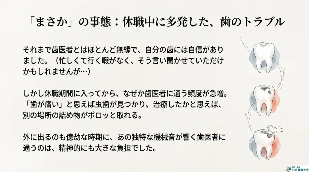 しかし、休職期間に入ってから、なぜか歯医者に通う頻度がものすごく増えました。