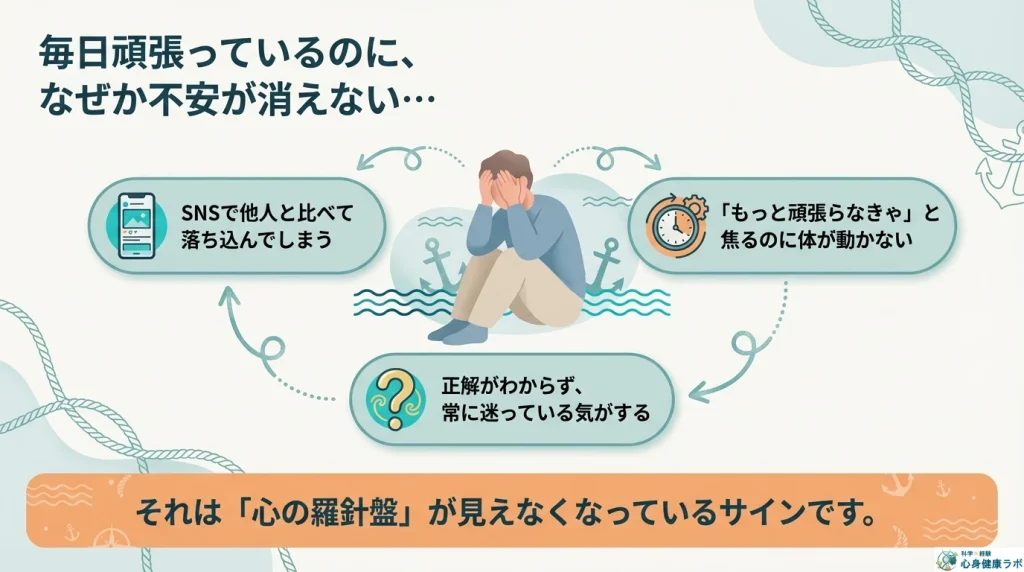 その焦りや不安、実は『心の羅針盤』が見えなくなっているせいかもしれません。