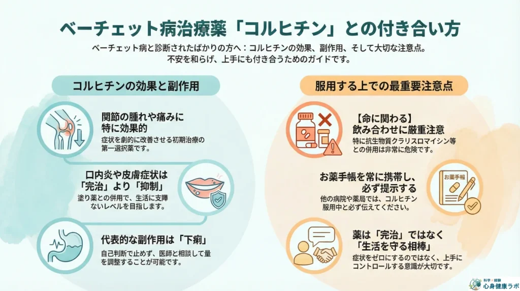 🌱 この記事の結論:コルヒチンは「完治」の薬ではないが、「生活を守る」頼れる相棒になる